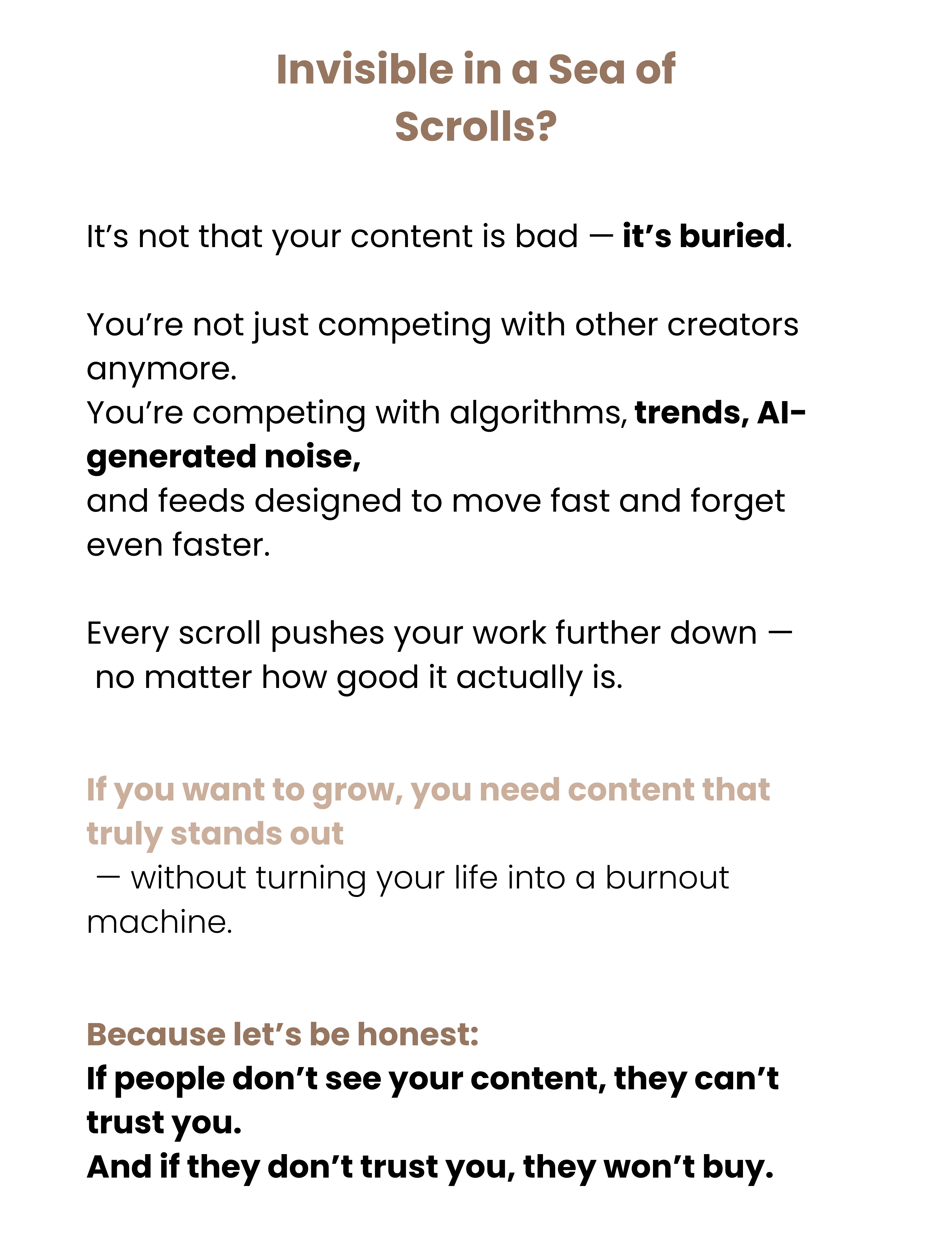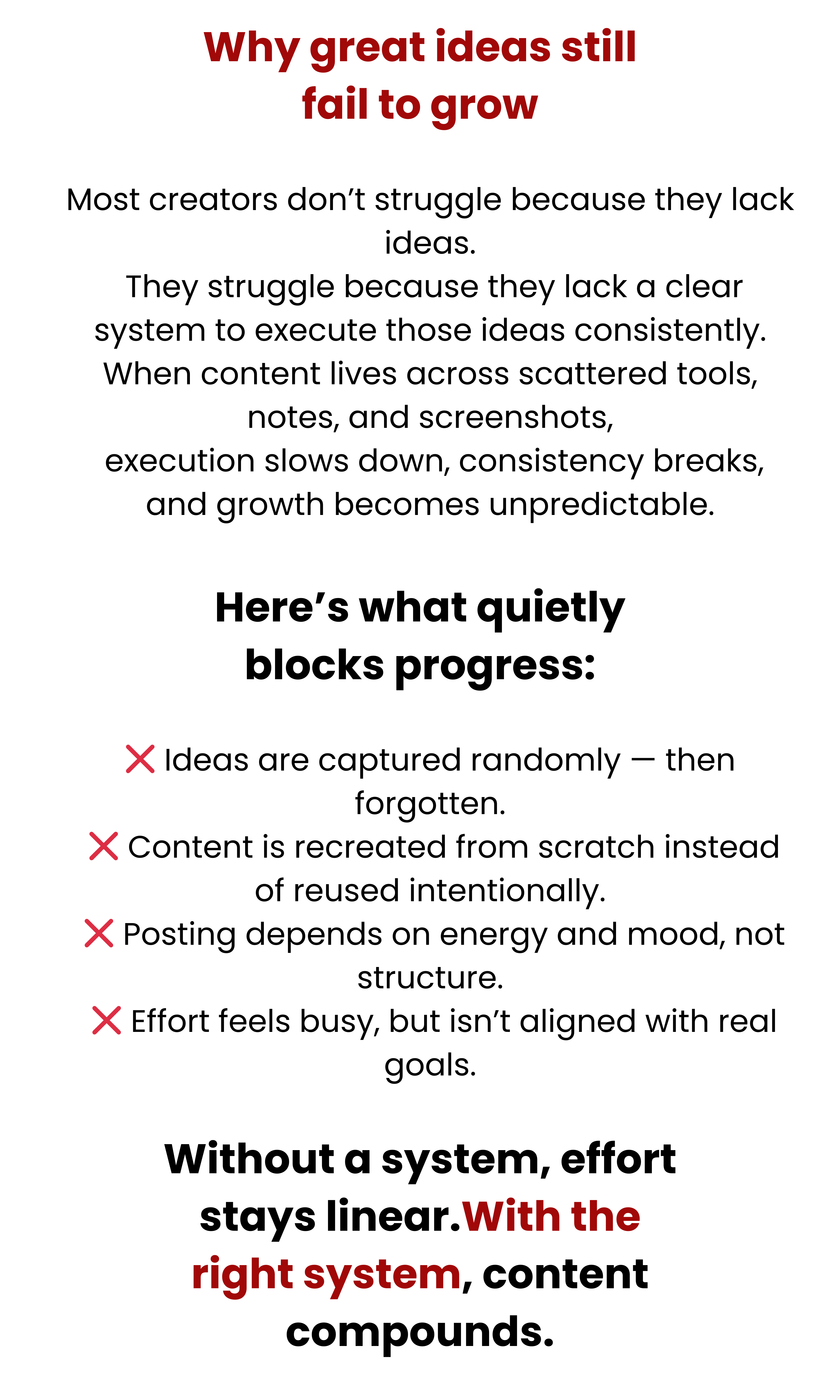 a clear, simple content system that helps you stay consistent, create without chaos, and grow without burnout.